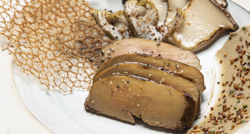 Disposez-les à côté du foie gras avant de verser le bouillon de champignons sobacha.